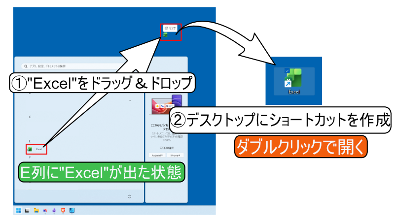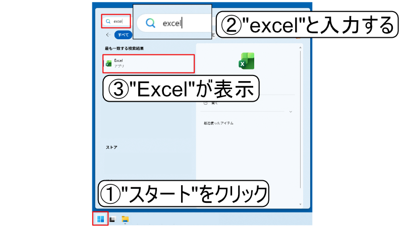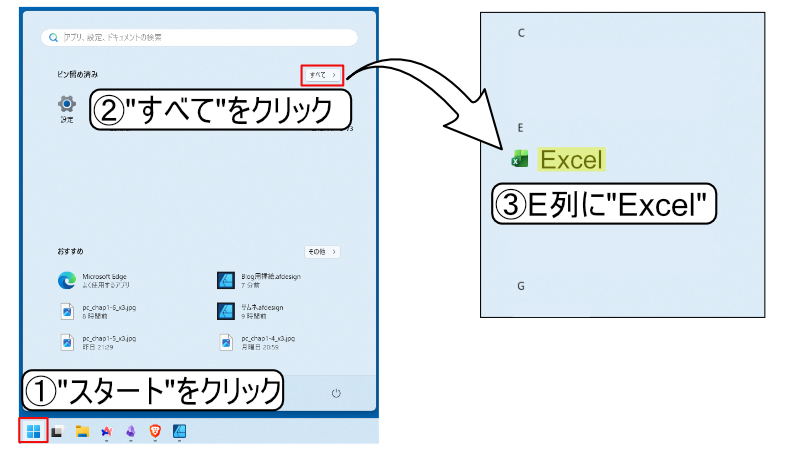 excel」と入力する - 候補に出たExcel(緑のE)をクリック