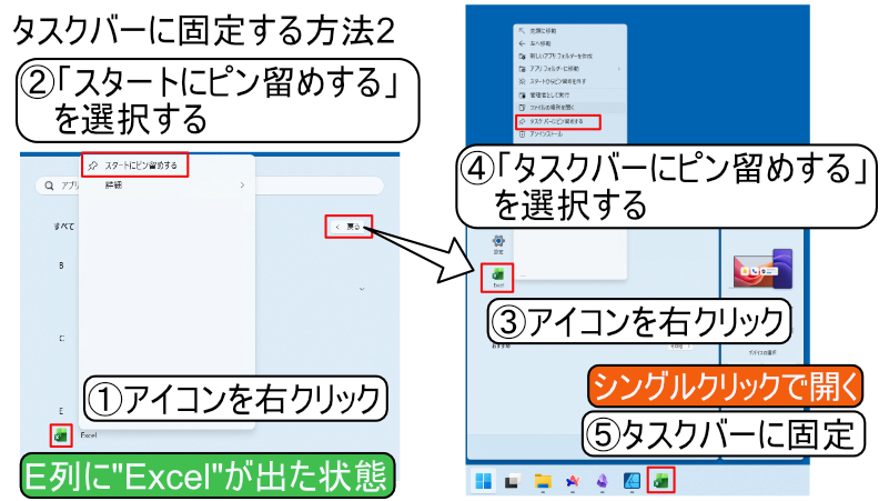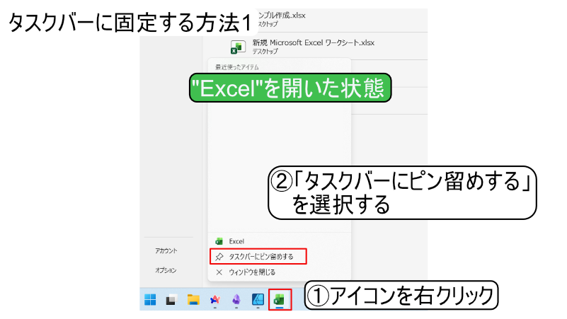 - 方法4(タスクバーのピン留め)でExcelを起動 → 2回繰り返す