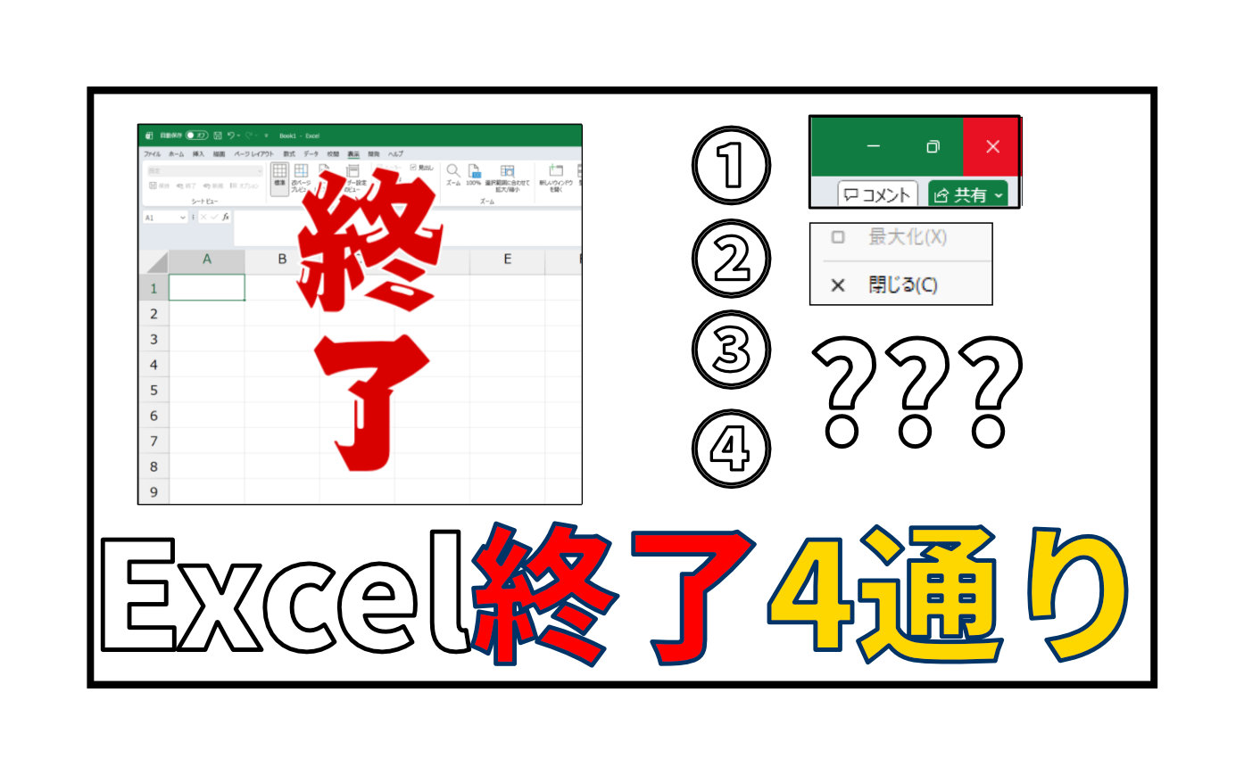 - ウィンドウを閉じる → Excelを終了します