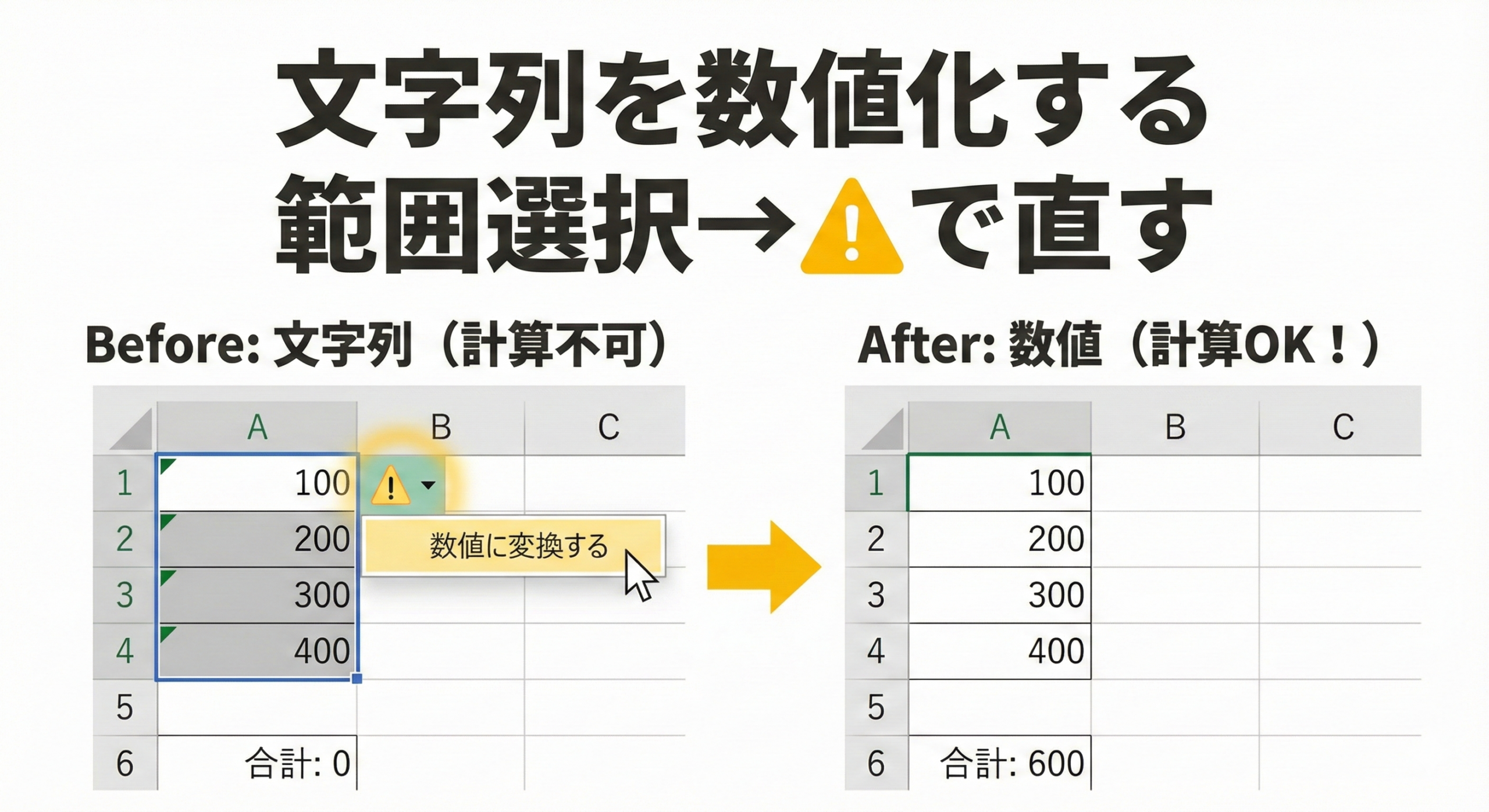 • ⚠で数値に変換が最速