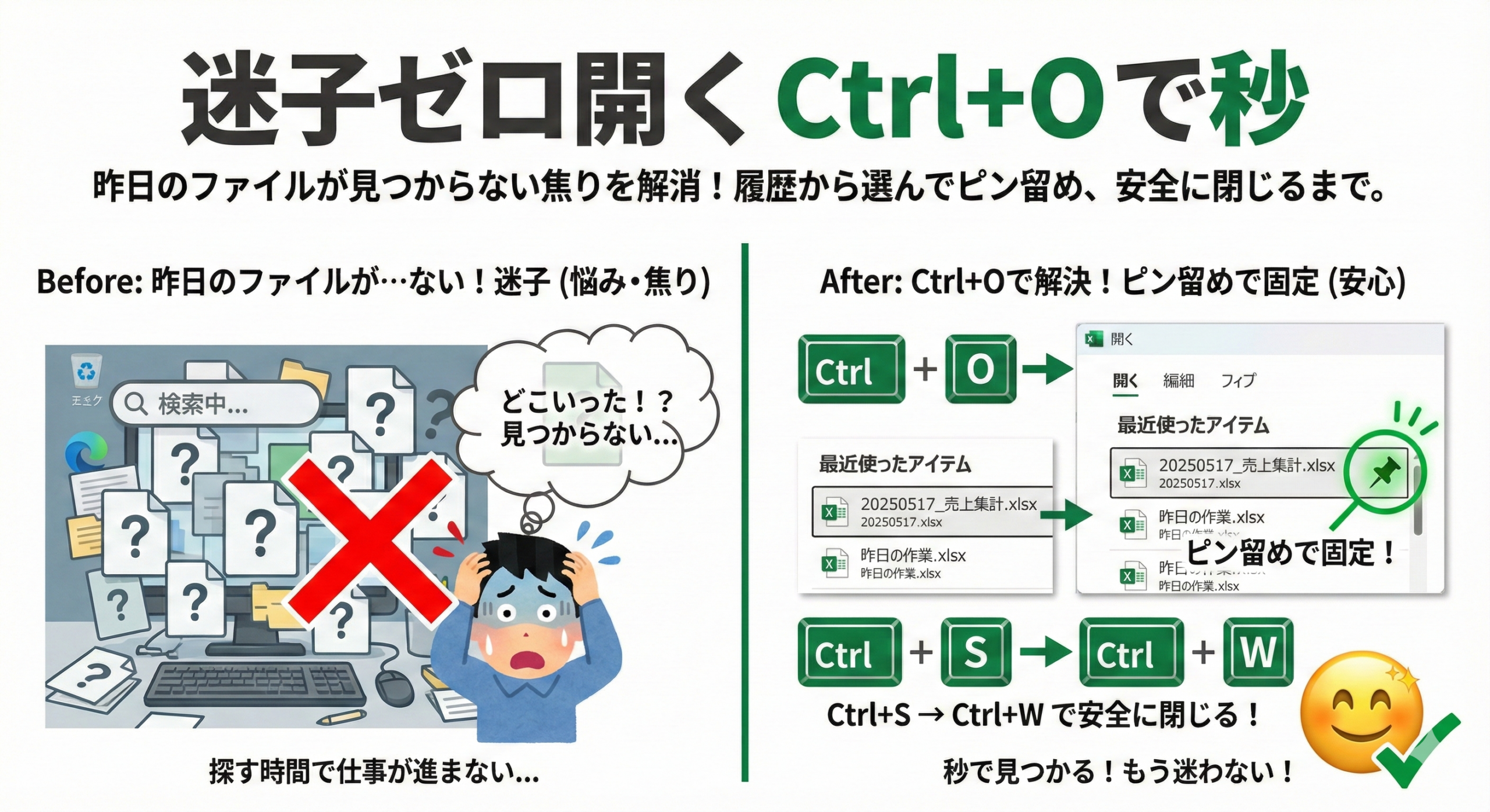 解決:Ctrl+O と最近使用で秒速開閉