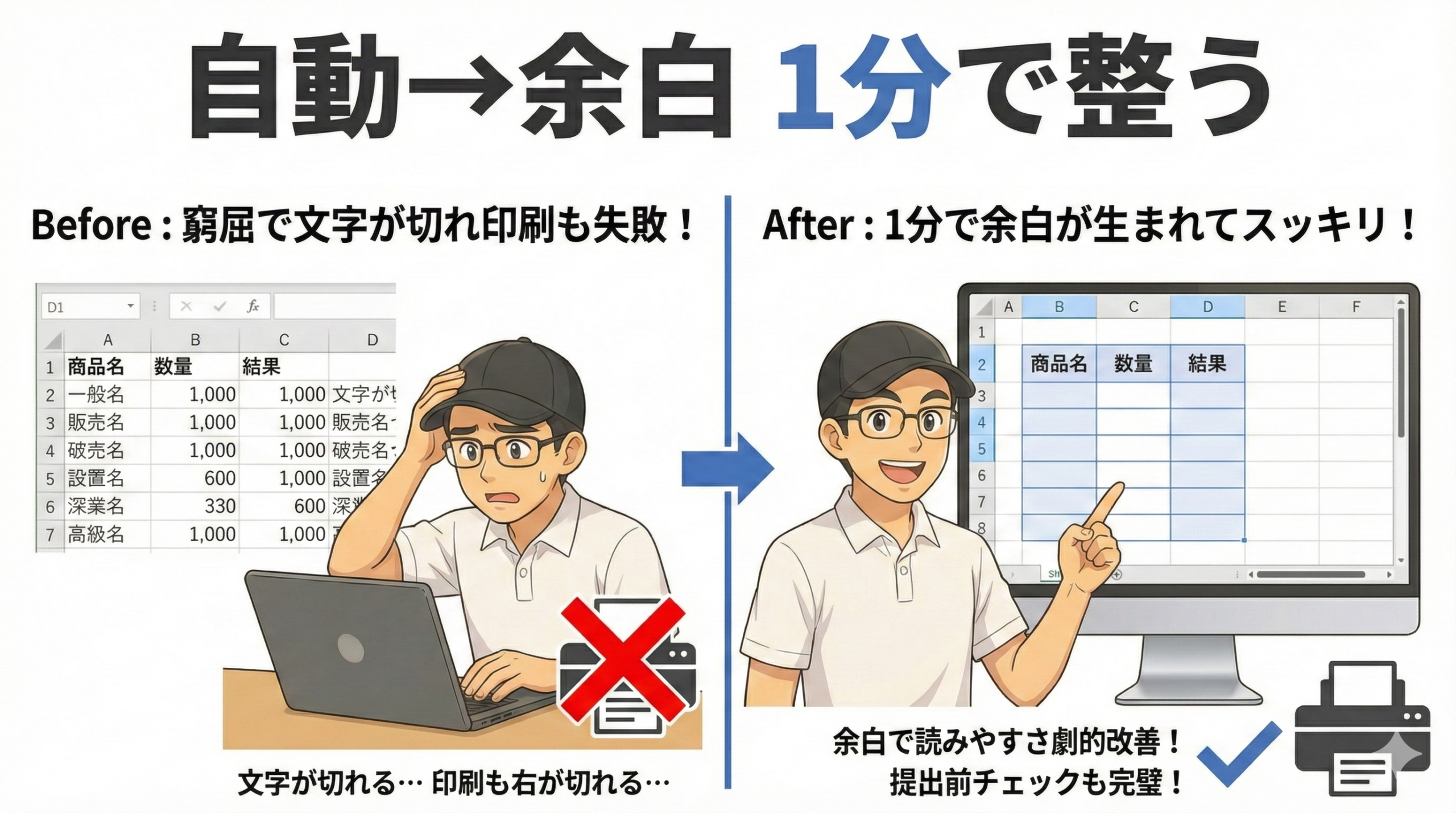 解決:「自動→余白→統一→折り返し→確認」の流れ