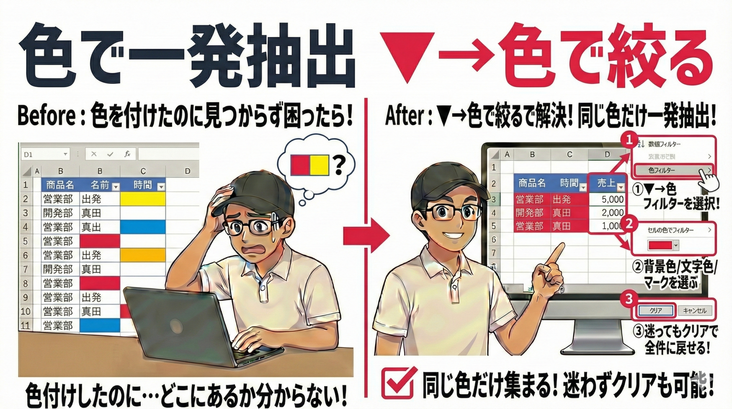2. ▼ → 色でフィルター → アイコンでフィルター